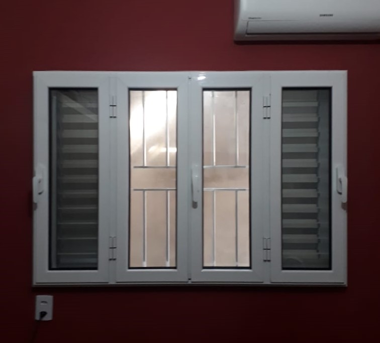 Suas quatro folhas de giro permitem uma abertura quase integral do espaço, proporcionando ventilação excepcional quando desejado e total estanqueidade (vedação) quando fechada.